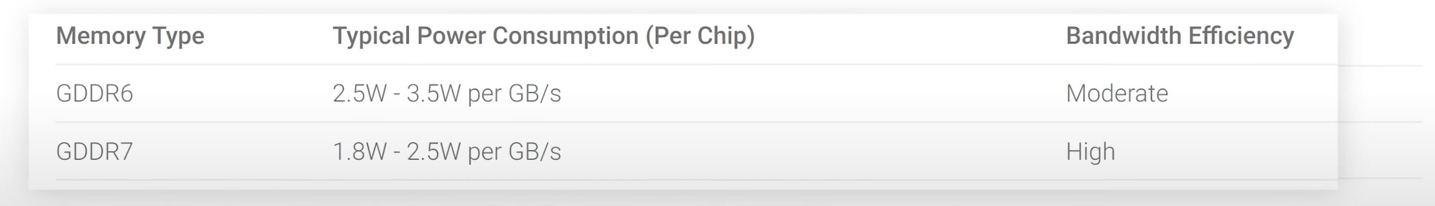 We all know AI chips are power hungry, yeah? Turns out a decent chunk of that power demand comes from the huge amounts of memory required for AI models – with a screenshot from an Nvidia document that has some power consumption estimates for the GDDR6 (1.25-3.5W per GB/s) and GDDR7 (1.8-2.5W per GB/s) memory formats.