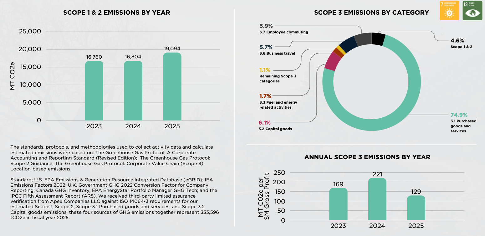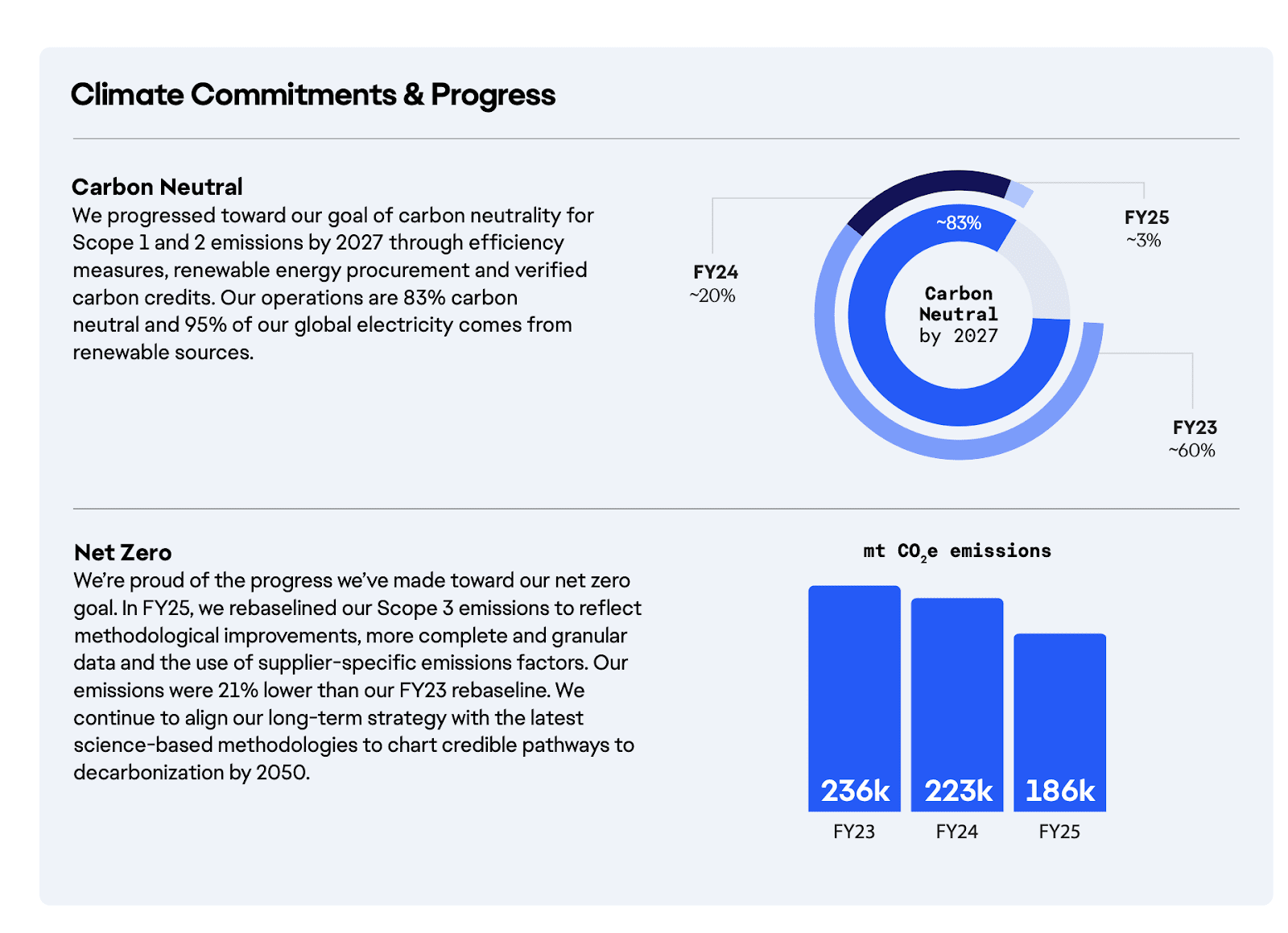 Scope 1 & 2 emissions are up slightly, while Scope 3 are (or were, in 2024) down below 2022 levels. I would love more details on what the main drivers are, as it would give us some confidence that they won't just come back up again in the future. A slightly more detailed breakdown of what sorts of purchases are in that big chunk of S3.1 Purchased Goods and Services category would be illuminating. Breakouts for different categories like cloud, marketing, IT hardware, and others would be handy to have.