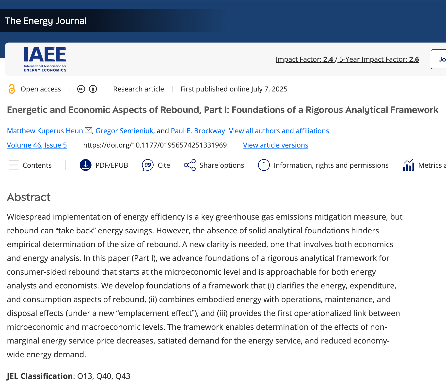 It's a new theoretical framework for understanding the "rebound effect" of energy efficiency improvements, sometimes called the Jevons Paradox, which is the idea that improvements in energy efficiency can cause the use of more energy than has been saved through efficiency. It's an argument for a lot more analytical rigor, and it looks quite useful.