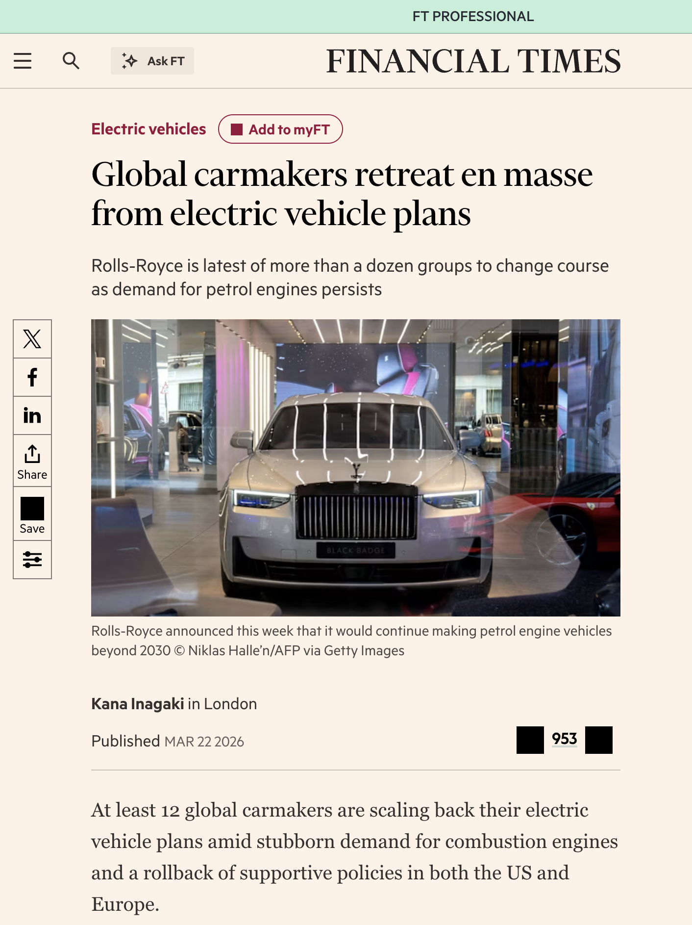 The FT reports that lots of late entrants into the EV market have lost billions, and are now pivoting back to combustion engines... 😬