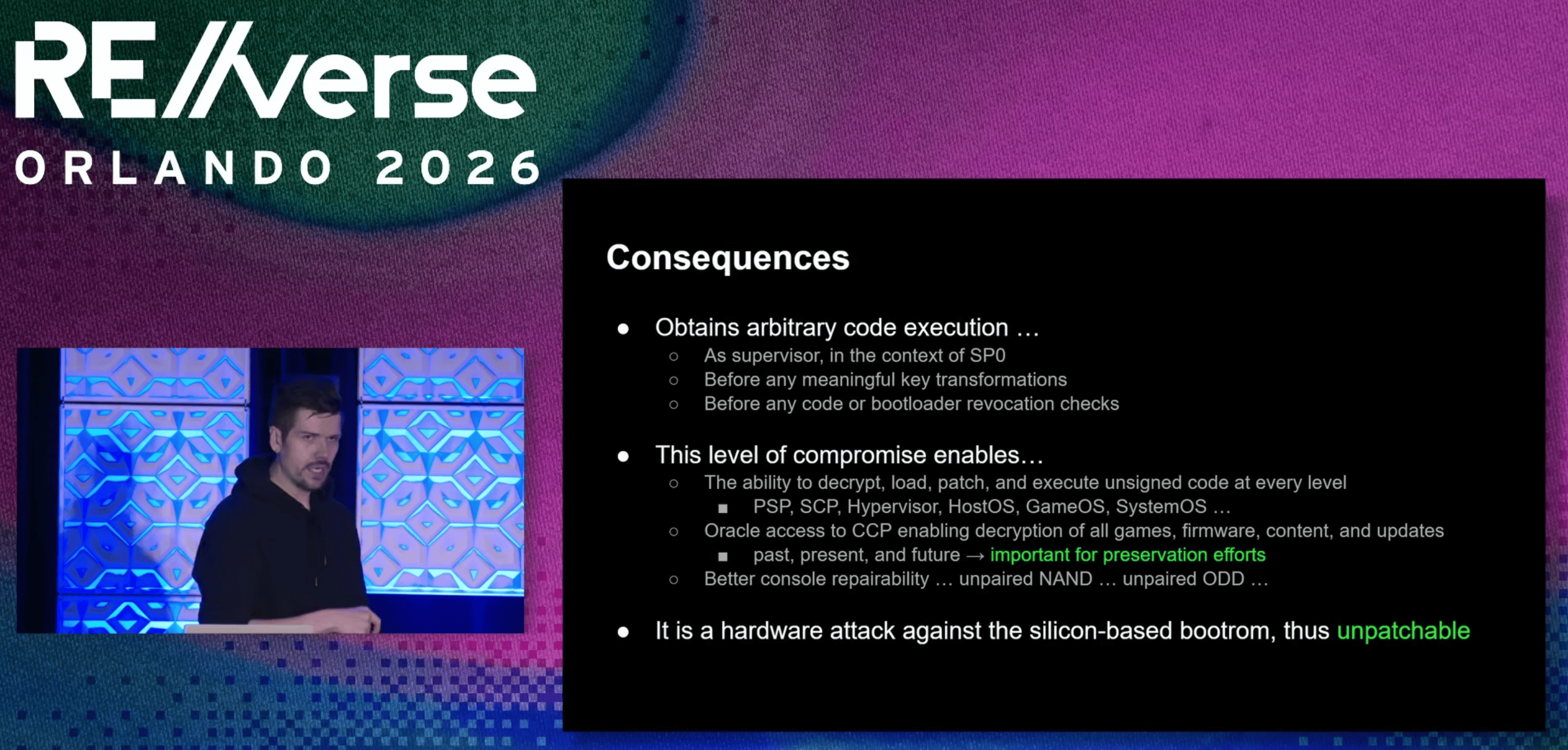 Speaking of game preservation – this week I watched the fascinating talk above about the process of hacking into the BootROM of the Xbox One console via some extreme levels of hardware hacking. The sustainability angle is that this sort of control enables comprehensive repair options (such as swapping out cryptographically paired optical disk drives, which do fail with age) and at the more extreme end, could facilitate the total repurposing of otherwise mostly useless, but perfectly functioning hardware for other, general purpose computing.