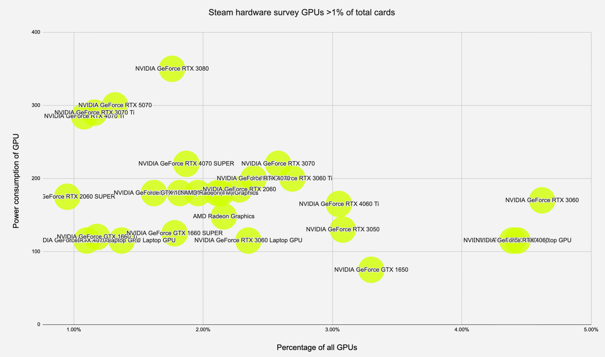 I tried to get the interactive version of this chart of GPU power consumption and popularity on Steam to work here, but it refused to keep the x-axis scale setting and was basically unintelligible, so here's the static version – click through to see the spreadsheet and the interactive chart if you like.